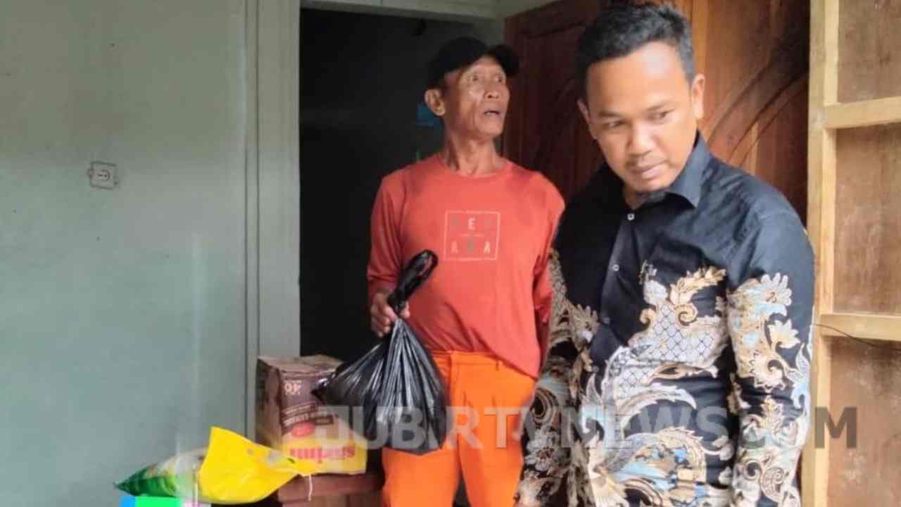 Koswara memberikan bantuan sembako kepada para penghuni rumah tersebut saat memantau langsung lokasi bencana.