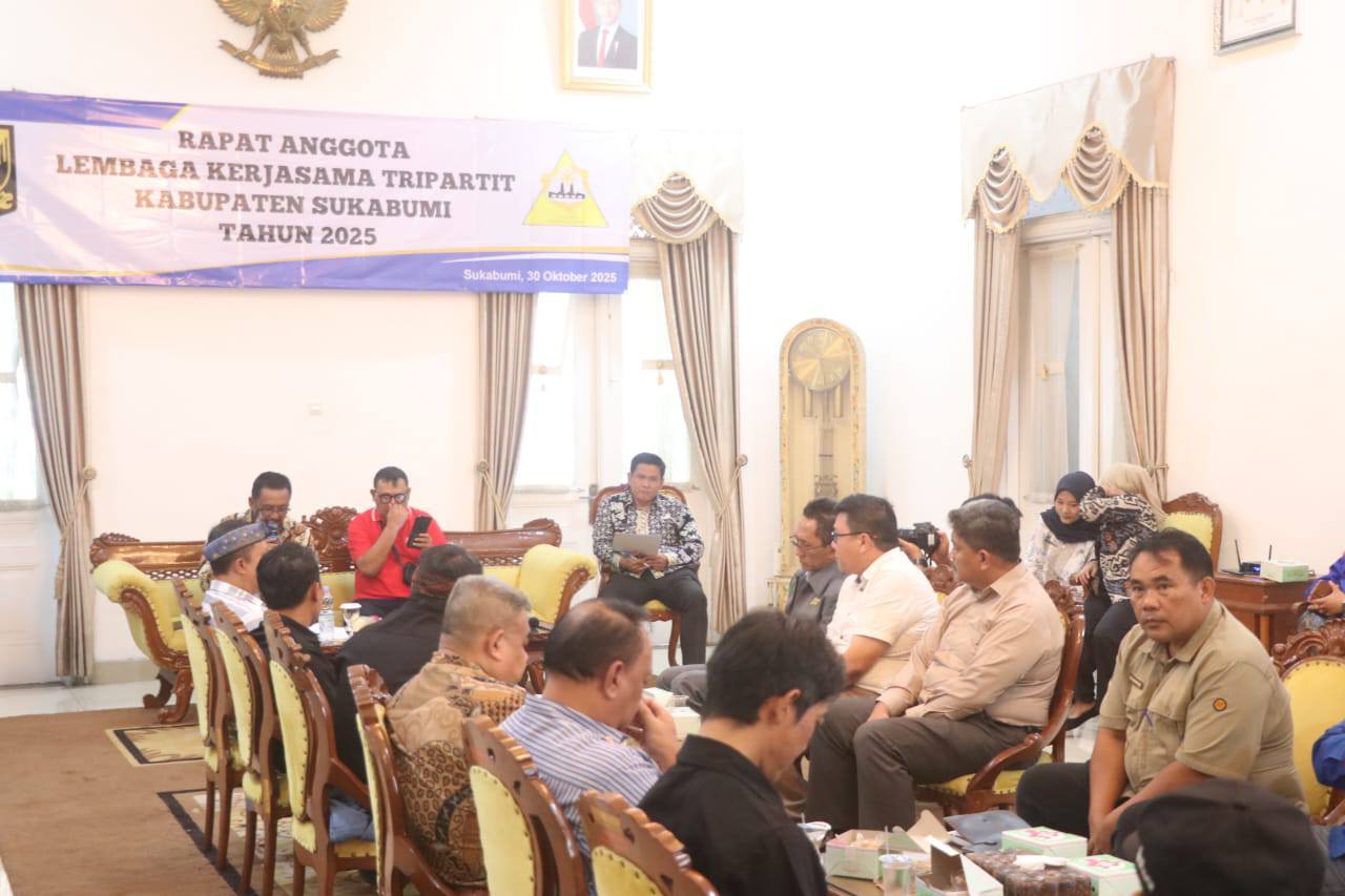 CORONGSUKABUMI.com – Bupati Sukabumi Asep Japar bersama pengurus dan anggota Lembaga Kerja Sama (LKS) Tripartit menggelar pertemuan di Pendopo Sukabumi, Kamis (30/10/2025). Forum tersebut membahas sejumlah isu strategis terkait dunia usaha dan ketenagakerjaan di Kabupaten Sukabumi.