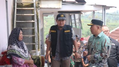 JUBIRTVNEWS.COM โ Wakil Bupati Sukabumi, Andreas, meninjau lokasi terdampak bencana angin puting beliung di Desa Cibunar Jaya, Kecamatan Ciambar, Kamis (8/5/2025).