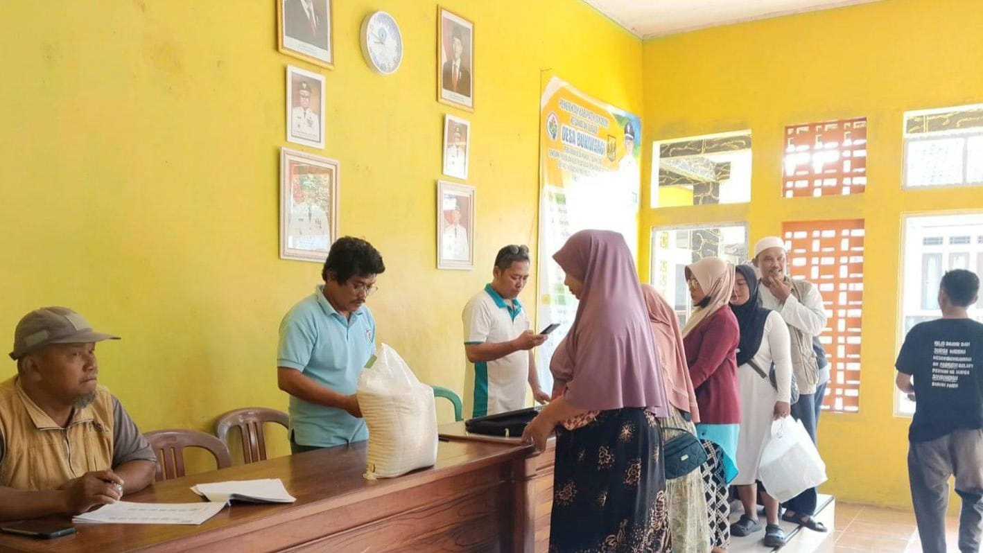 JUBIRTVNEWS.COM β Sebanyak 608 keluarga penerima manfaat (KPM) di Desa Buniwangi, Kecamatan Surade, Kabupaten Sukabumi, menerima bantuan beras dari program Cadangan Pangan Pemerintah (CPP), Jumat (1/8/2025). Bantuan tersebut mencakup alokasi bulan Juni dan Juli 2025, dengan total beras yang disalurkan mencapai 1.216 kilogram.