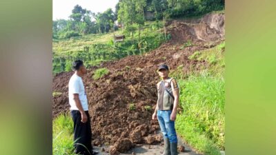 Ia menjelaskan, peristiwa longsor terjadi pada Selasa (21/4/2026) dini hari. Kejadian tersebut dipicu oleh ambrolnya saluran irigasi yang berada di area tersebut, sehingga menyebabkan tanah di sekitarnya ikut runtuh.