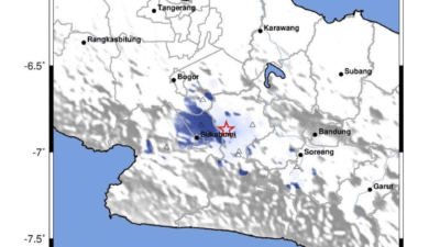 CORONGSUKABUMI.com โ Gempa bumi tektonik berkekuatan magnitudo 2,4 mengguncang wilayah Kabupaten Cianjur, Jawa Barat, pada Minggu (5/4/2026) pagi. Getaran gempa dilaporkan turut dirasakan oleh sebagian warga, termasuk di wilayah Kabupaten Sukabumi.