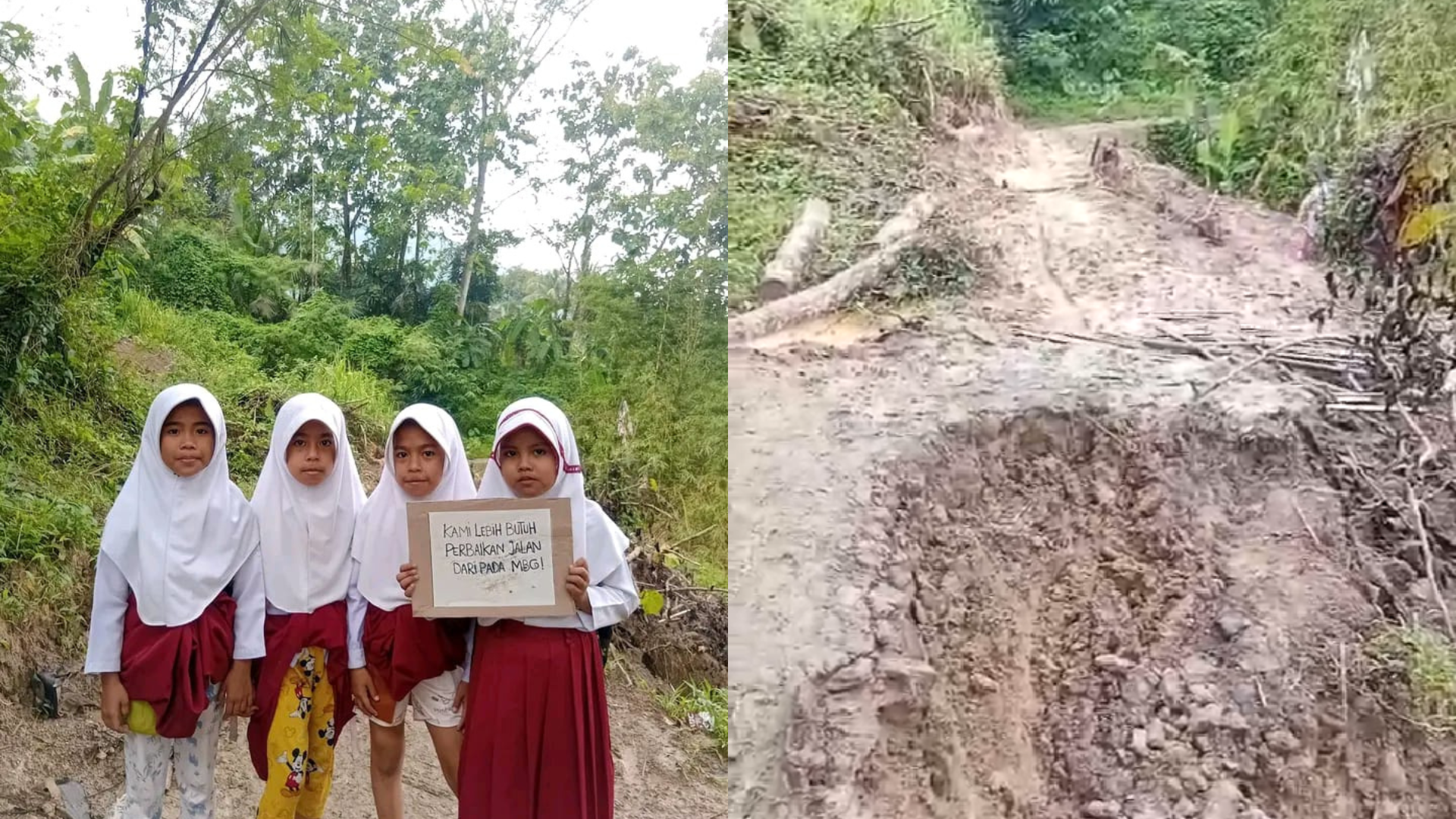 Kondisi jalan yang rusak cukup lama dan memburuk akibat tingginya intensitas hujan itu memicu munculnya poster bertuliskan, β€œKami Lebih Butuh Jalan daripada Makan Bergizi Gratis (MBG)” sebagai bentuk aspirasi warga dan pelajar setempat.