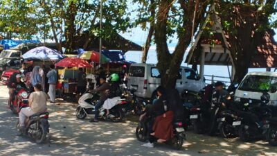 Sejak pagi hari, arus kendaraan menuju kawasan pantai terus meningkat. Kepadatan terlihat dari antrean kendaraan roda dua dan roda empat yang sempat mengular di sejumlah akses jalan menuju lokasi wisata.
