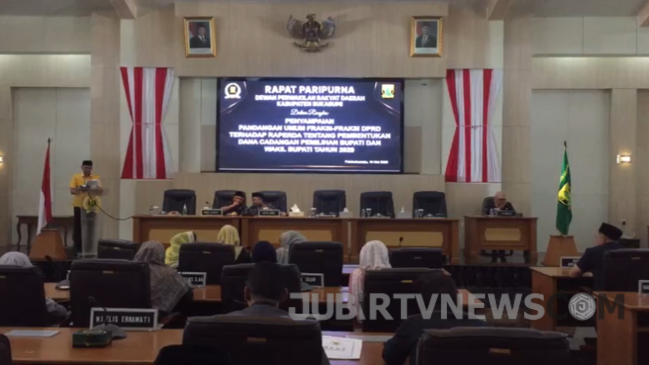 Kabupaten Sukabumi, jubirtvnews.com – Rancangan Peraturan Daerah tentang pembentukan dana cadangan untuk pemilihan bupati tahun 2029, memasuki tahap pandangan umum dari fraksi-fraksi di DPRD Kabupaten Sukabumi.