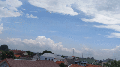 Cuaca berawan, dengan potensi hujan ringan hingga sedang di sebagian wilayah Kabupaten Sukabumi.
