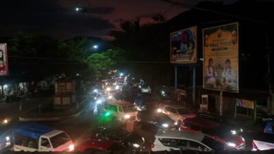 CORONGSUKABUMI.com โ Kepadatan arus balik wisatawan dari kawasan pantai selatan Kabupaten Sukabumi memuncak pada H+3 Lebaran, Selasa (24/3/2026), dengan Simpang Batusapi, Palabuhanratu, menjadi titik kemacetan paling parah. Ribuan kendaraan yang keluar secara bersamaan dari area wisata membuat lalu lintas nyaris lumpuh selama beberapa jam.