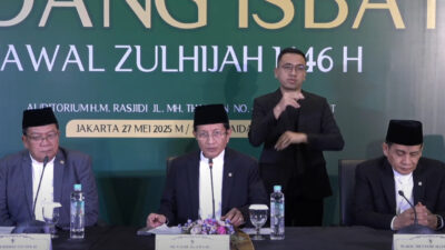JUBIRTVNEWS.COM – Pemerintah menetapkan bahwa 1 Zulhijah 1446 Hijriah jatuh pada 28 Mei 2025. Keputusan ini diumumkan sesuai hasil sidang isbat yang digelar hari ini, Selasa (27/5/2025) di Auditorium H.M Rasjidi Kantor Kementerian Agama, Jakarta.