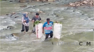 Kabupaten Sukabumi, jubirtvnews.com – Banjir besar yang melanda Kampung Cibadak, Desa Neglasari, Kecamatan Lengkong, Kabupaten Sukabumi, menyebabkan jembatan utama penghubung antar kecamatan ambruk total. Akibatnya, ratusan warga, terutama anak-anak sekolah dan guru, harus mengambil risiko besar dengan menyeberangi Sungai Cikaso yang berarus deras setiap hari.