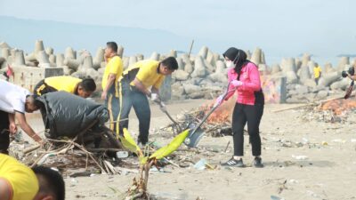 JUBIRTVNEWS.COM – Ketua Bhayangkari Daerah Jawa Barat, Ges Akhmad Wiyagus, bersama Kapolres Sukabumi, AKBP Dr. Samian, memimpin aksi bersih-bersih pantai di kawasan Palabuhanratu, Jumat (11/4/2025), sebagai bentuk kepedulian terhadap kelestarian lingkungan pesisir yang kini tercemar akibat rendahnya kesadaran wisatawan dalam membuang sampah.