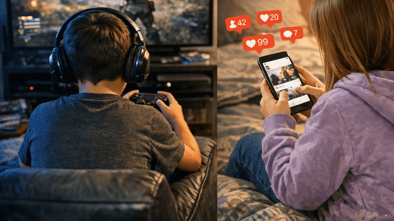 Tidak ada satu jawaban pasti. Game cenderung berdampak pada kontrol diri, sedangkan media sosial pada kondisi emosional.