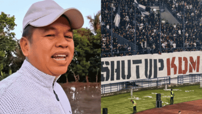 Spanduk tersebut muncul saat laga Persib Bandung melawan Arema FC pada Jumat (24/4/2026), dan dinilai sebagai bentuk kritik langsung kepada Gubernur Jawa Barat, Dedi Mulyadi.