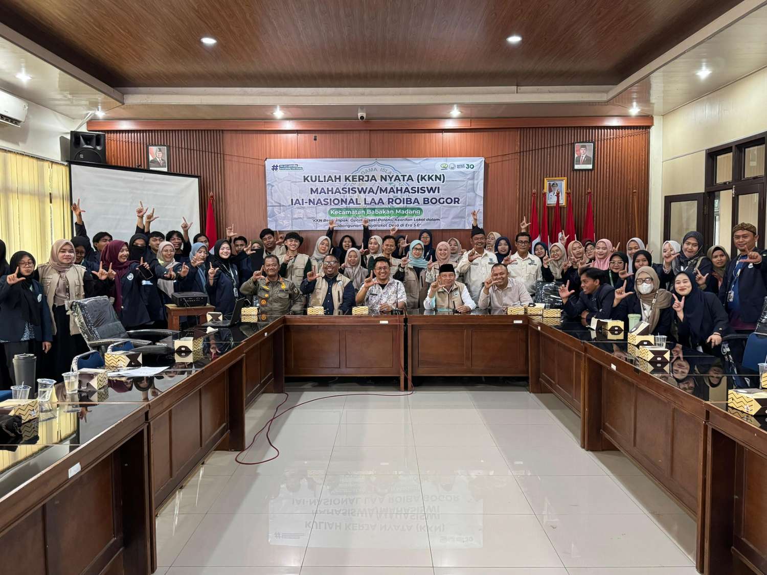 JUBIRTVNEWS.COM – Institut Agama Islam Nasional (IAI-N) Laa Roiba Bogor secara resmi menyerahkan mahasiswa peserta Kuliah Kerja Nyata (KKN) kepada pihak Kecamatan Babakan Madang. Kegiatan ini mengusung tema “KKN Berdampak: Optimalisasi Potensi Kearifan Lokal dalam Pembangunan Masyarakat Desa di Era 5.0.”