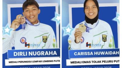 JUBIRTVNEWS.COM – Prestasi membanggakan diraih siswa-siswi SMAN 1 Surade pada ajang Pekan Olahraga Pelajar Daerah (POPDA) Jawa Barat XIV di Bandung. Dua atlet sekolah ini, Carissa Huwaidah dan Dirli Nugraha, berhasil mengharumkan nama sekolah dan Kabupaten Sukabumi lewat raihan medali di cabang olahraga atletik.