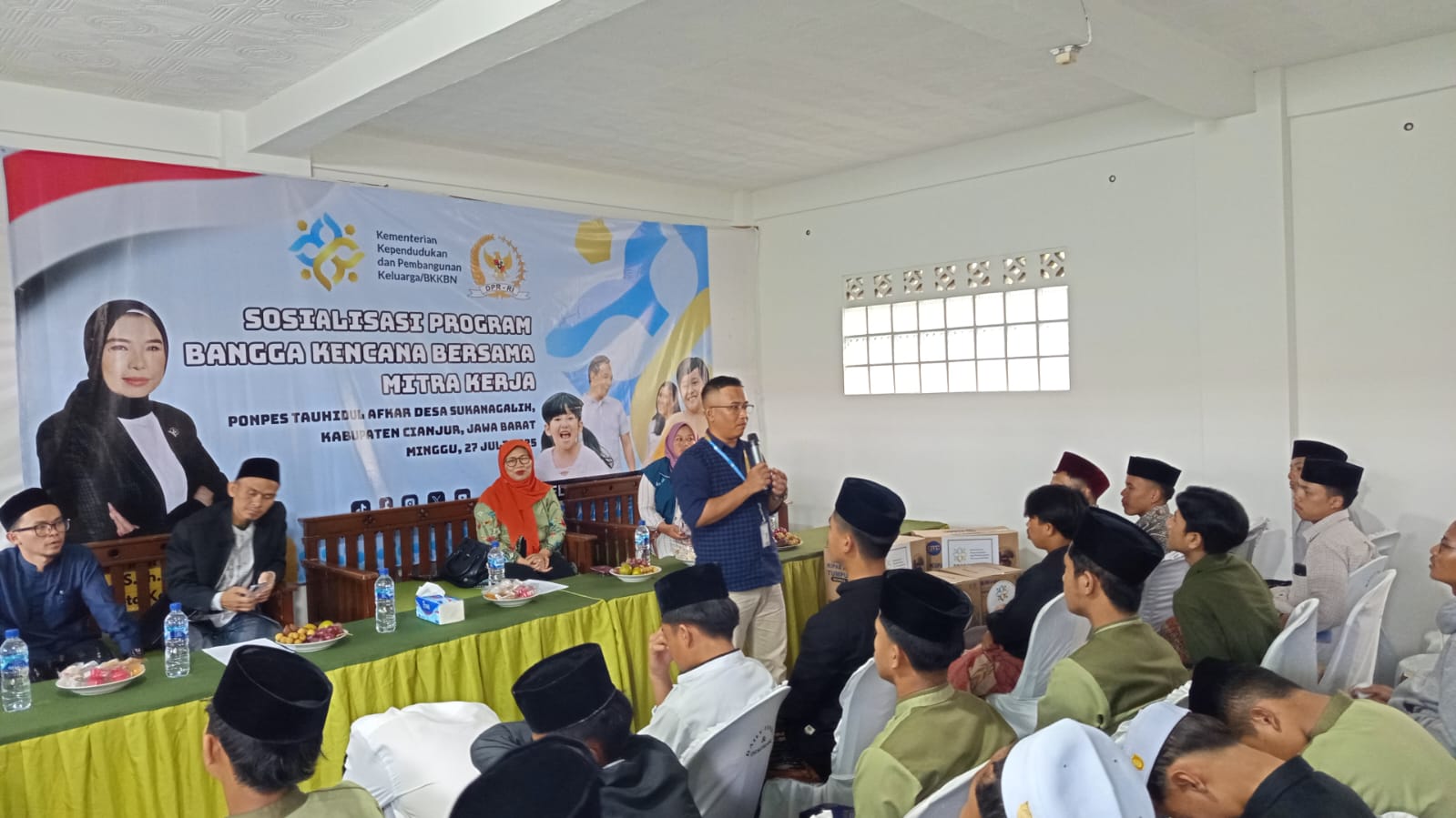 JUBIRTVNEWS.COM – Badan Kependudukan dan Keluarga Berencana Nasional (BKKBN) bersama mitra kerja melaksanakan sosialisasi Program Bangga Kencana di Pondok Pesantren Tauhidul Afkar, Kabupaten Cianjur, Jawa Barat. Kegiatan yang berlangsung meriah ini diikuti oleh para santri, pengasuh pondok, tokoh masyarakat, serta elemen masyarakat sekitar, Minggu (27/8/2025).