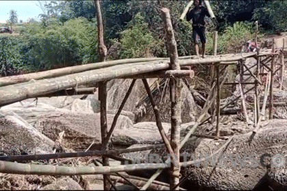 Kabupaten Sukabumi, jubirtvnews.com βΒ Jembatan bambu darurat yang dikenal sebagai Jembatan Guha Monyet di Desa Tanjung, Kecamatan Jampangkulon, Kabupaten Sukabumi, hanyut diterjang derasnya arus Sunga...