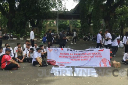 Kabupaten Sukabumi, jubirtvnews.com – Ratusan guru honorer kategori R3 memperjuangkan masa depannya dengan mendatangi kantor sekertaris daerah Kabupaten Sukabumi di jalan Siliwangi, Kecamatan Pa...