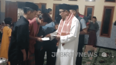 Kabupaten Sukabumi, jubirtvnews.com – Yayasan Forum Silaturahmi Barisan Benteng Pajampangan (YFSBBP) menggelar pengajian rutin bulanan di Masjid Al Ijabah, Kampung Pasirpulus, Kelurahan dan Kecamatan Jampangkulon, Kabupaten Sukabumi, pada Jumat malam, 8 Agustus 2025. Acara dimulai dalam suasana yang khusyuk, dan dibuka dengan pemberian santunan kepada puluhan anak yatim. Santunan ini diserahkan langsung oleh Ketua Umum YFSBBP, Isep Dadang Sukmana, yang turut didampingi oleh Lurah Jampangkulon, Dani Munggaran.