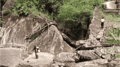 Kabupaten Sukabumi, jubirtvnews.com – Jembatan bambu darurat yang dikenal sebagai Jembatan Guha Monyet di Desa Tanjung, Kecamatan Jampangkulon, Kabupaten Sukabumi, hanyut diterjang derasnya arus Sungai Cikarang pada Sabtu malam, 1 November 2025. Banjir bandang terjadi sekitar pukul sebelas malam setelah hujan lebat mengguyur sejak petang. D Derasnya arus sungai tak mampu ditahan oleh jembatan bambu hasil gotong royong warga, hingga akhirnya konstruksi sederhana itu ambruk dan hanyut terbawa air.