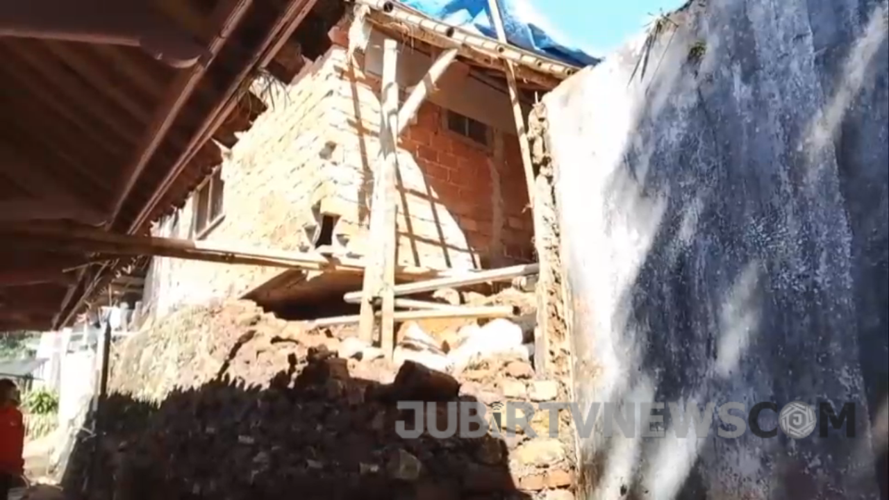 Kabupaten Sukabumi, jubirtvnews.com – Tembok penahan tanah (TPT) yang sekaligus berfungsi sebagai pagar pembatas antar rumah warga di Kampung Kedung, Desa Cijulang, Kecamatan Jampangtengah, Kabupaten Sukabumi, ambruk akibat longsor yang terjadi pada Minggu, 25 Mei 2025 lalu.