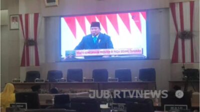Kabupaten Sukabumi, jubirtvnews.com – Jajaran Pemerintah Daerah Kabupaten Sukabumi mengikuti siaran langsung Pidato Kenegaraan Presiden Republik Indonesia, Prabowo Subianto, dalam rangka peringatan Hari Ulang Tahun ke-80 Kemerdekaan Republik Indonesia. Kegiatan ini berlangsung di ruang rapat Paripurna DPRD Kabupaten Sukabumi, pada Jum’at, 15 Agustus 2025.